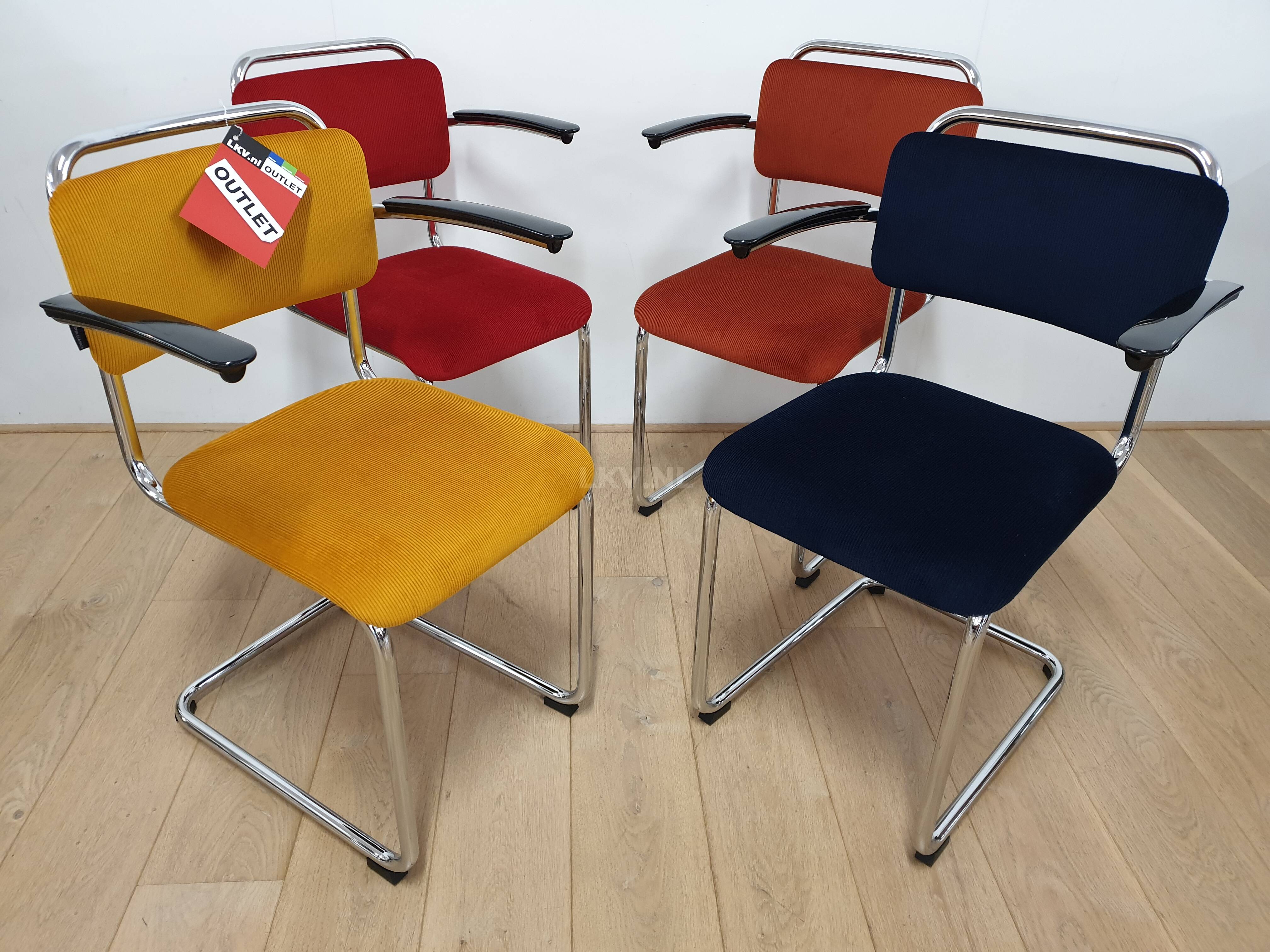 Kleur: 1x rood, 1x geel, 1x terra, 1x blauw
