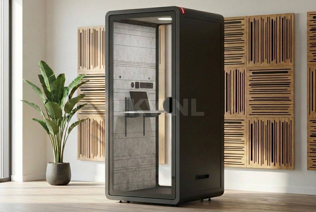 Kom naar onze showroom om deze belcel/werkplek te bekijken .